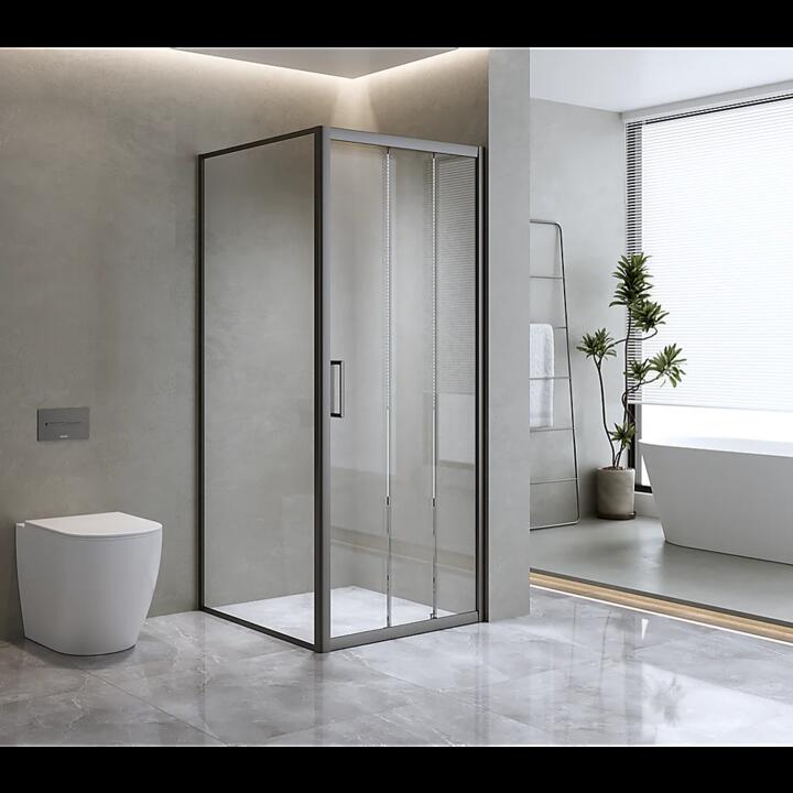 40mm Adjustable Contemporary Corner Sliding Black Shower Screen 116x80cm