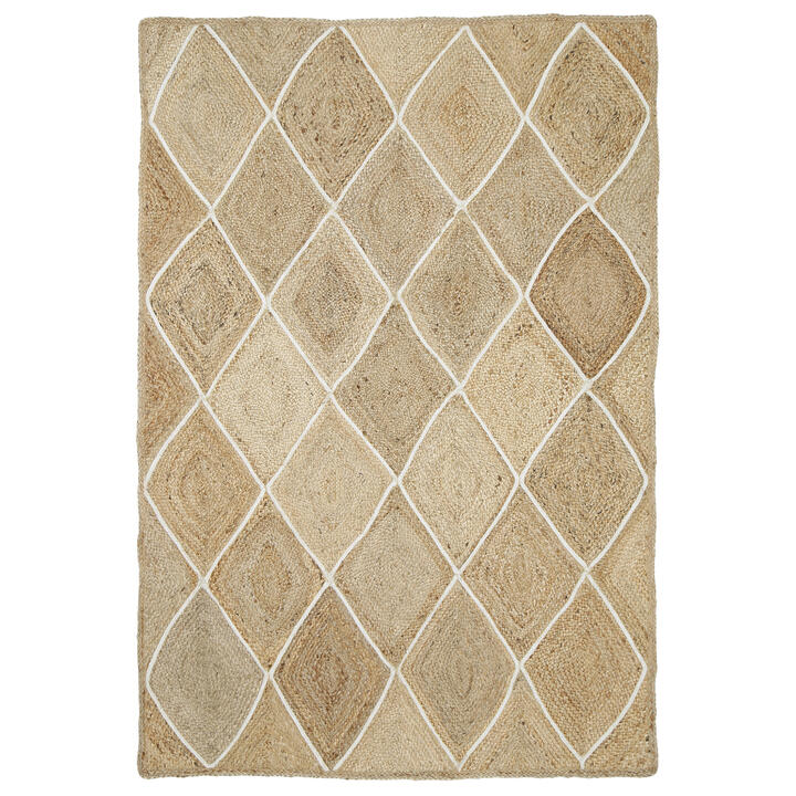 Artisan Diamond Handwoven Jute Rug, 220x150cm, Natural