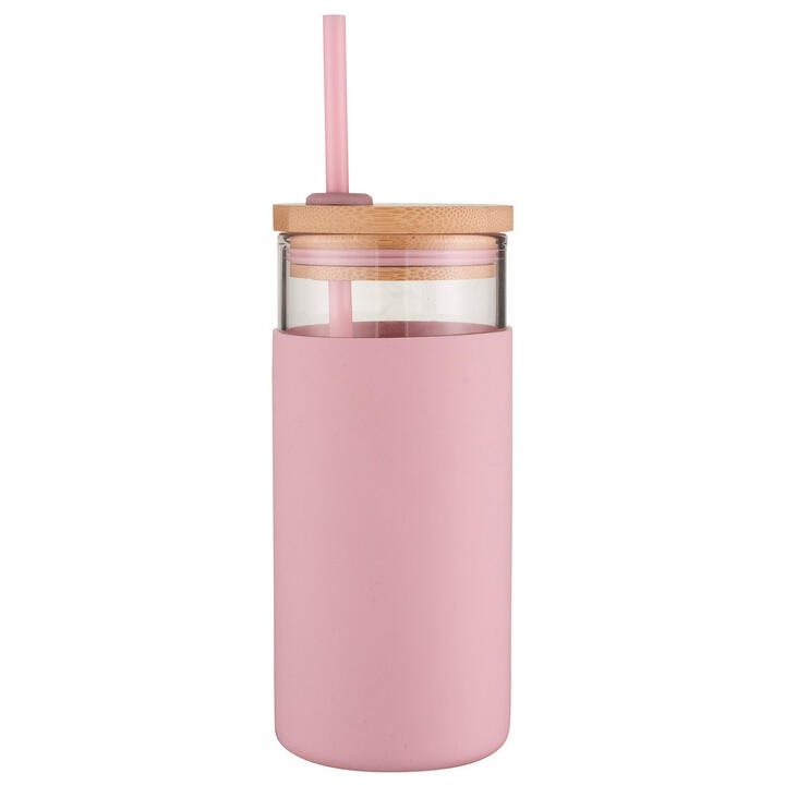 Avanti Glass Smoothie Tumbler with Straw, 500ml, Pink