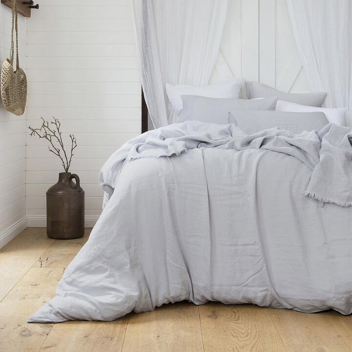 Bambury French Flax Linen Quilt Cover Set, Super King, Silver