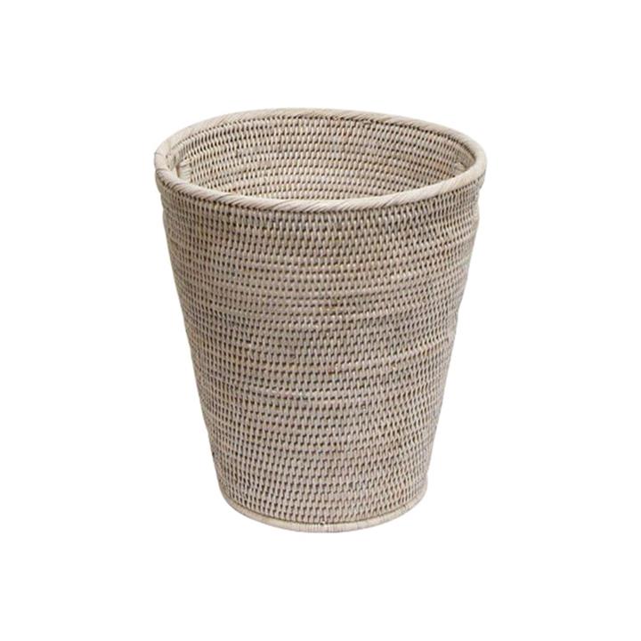 Coco Rattan Round Waste Basket, White Wash
