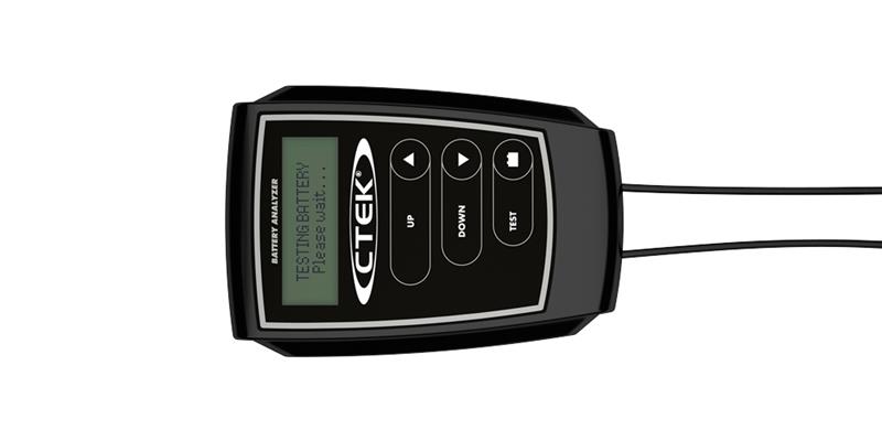 Fast, accurate testing for 12V lead-acid batteries Innovation in battery testing The CTEK BATTERY ANALYZER has been specially designed for testing 12V lead-acid starter batteries, including Wet, Maintenance Free, Ca/Ca and Gel. The clear on board display quickly gives you easy to understand results about your battery’s condition and tells you what action you need to take next. Simply attach the clamps to the battery and follow the on screen step by step instructions. The Analyzer tests the battery in seconds for an instant result. The test won’t put any load on your battery and it doesn’t generate any heat or dangerous sparks. And there’s no need to disconnect your battery when you’re using the Analyzer because CTEK’s patented technology makes sure it’s safe for you and your vehicle’s electronics. Easy to use – just connect and follow the on screen instructions Fast, accurate results in seconds Powered by Midtronics – #1 in battery testing Patented technology means no load is placed on your battery Suitable for most types of 12V lead-acid starter batteries between 200 and 1200 EN Reverse polarity protected 5-year warranty SAFETY INSTRUCTIONS