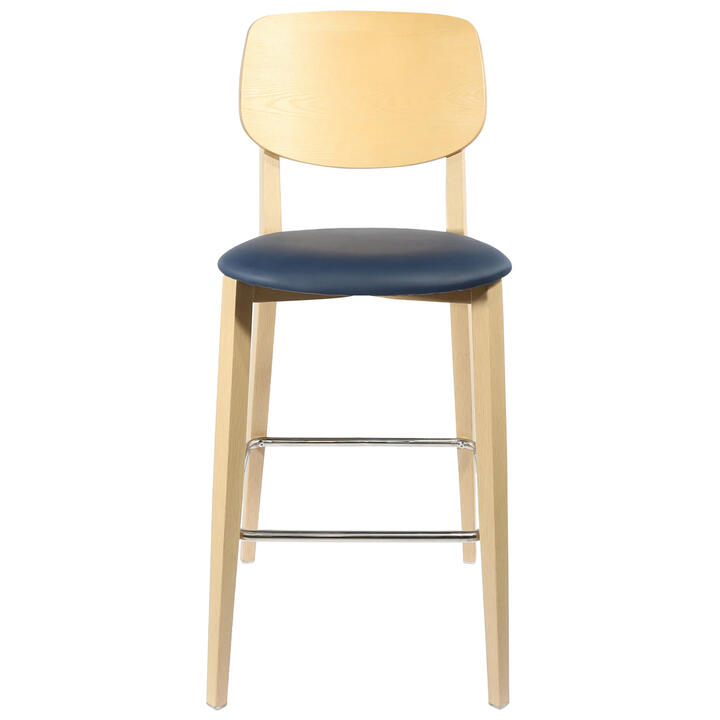 Durafurn Atlanta Rectella Commercial Grade Bar Stool, Timber Back & Vinyl Seat, Navy / Oak