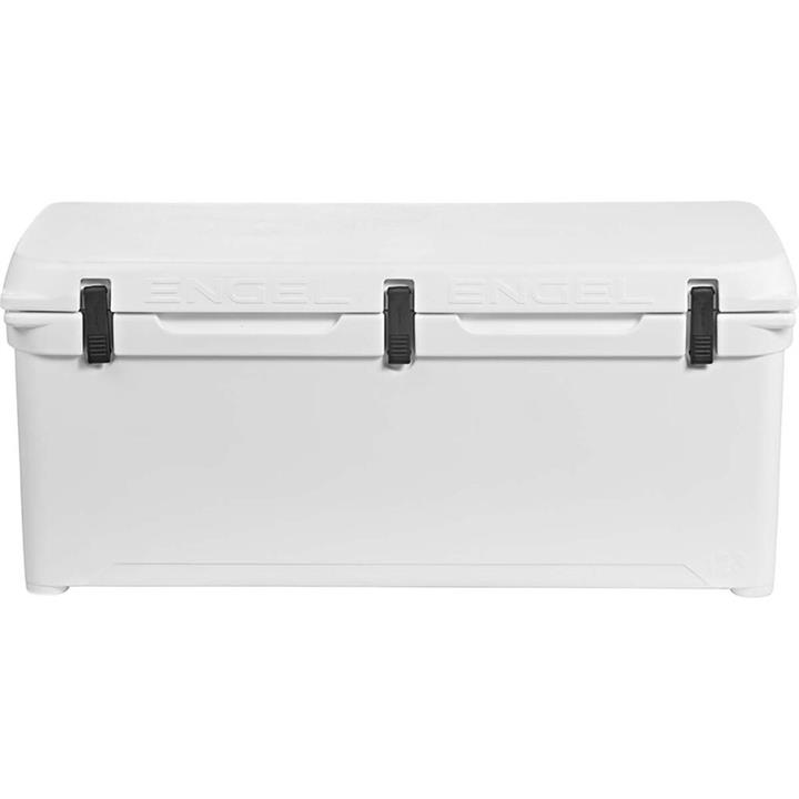 Engel ENG123W 102 Litre Ice Box, 10 Year Warranty. Engel, the original high-performance cooler, is roto-molded for toughness and durability. It’s filled with a full 50mm of insulation in the lid, on the sides, and on the bottom, helping to retain cold and ice for up to 10 days. The all silicone gaskets create a near airtight seal that is durable and will never lose it’s shape. Features: Available in 20, 33, 45, 55, 70, 102 & 158 Litre Capacities Ice retention for up to eight days Dry ice compatible Durable seamless construction IGBC Certified Bear Resistant Container 5 Cm of insulation Roto-Moulded shell Draw-down latches Re-enforced lid strong enough to sit on Easy to empty with a large drain plug 10 Year Warranty on the Ice Box main body (cabinet) Built for Toughness and Durability: SingleForm HardShell™ – Rugged roto-molded polyethylene shell. Easy-to-clean, stain resistant Insulation – With a full 2 inches of closed cell foam insulation in the lid, on the sides, and on the bottom, our coolers retain cold and ice for up to 10 days ArcticVault Gasket™ – Unlike the rubber gaskets used by our competitors, Engel’s all silicone gaskets create a near airtight seal that is durable and will never lose it’s shape Unity Latch System – Recessed marine-grade, adjustable draw latches with stainless steel hardware that double as a bottle opener Additional Technology: TruHold Lid™ – Reinforced non-skid lid for greater traction, stability and strength whether standing or sitting. Also available: Engel non-skid cooler pads – easy to apply, easy to clean I-BEAM Lid Inserts – Durable I-BEAM inserts allow for maximum weight-bearing strength and prevent lid warping Cornerstone Feet – Non-skid, non-marking feet keep cooler in place while keeping your deck clean Anvil Hinge – Integrated full-length, self-stopping rear hinge for maximum strength DuoLock Security Holes – Dual padlock holes allow you to lock the cooler shut for bear resistance Flick Drain Plug – Recessed one-twist opening drain plug with lanyard hole NOTE: In order to get the maximum amount of performance out of the icebox (i.e. 8 days ice retention) it is recommended you use the 2:1 Ratio. This refers to using two thirds of the icebox for ice and one third of the icebox for your goods.