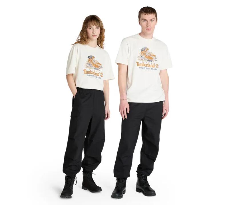 This authentic fit T-Shirt has a graphic of a Timberland boot on front, and it’s made with 100% organically grown cotton.