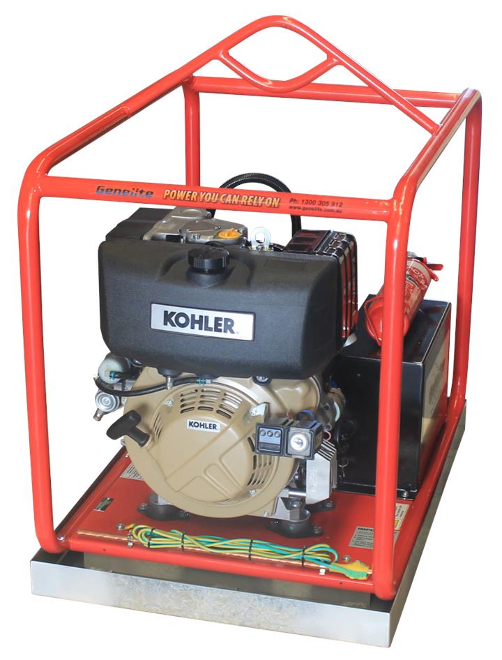 Genelite Diesel 7kVA Mine Spec Generator, Powered by Kohler, 2 Year Warranty. Ideal for the man on the land or construction site, the Genelite range of heavy duty diesel workstations are up for the job no matter how big or small. Using the highest quality Diesel engines matched to quality Italian built alternators and welders the Genelite range are Power You Can Rely ON! Genelite diesel generators are backed by a comprehensive 2 year warranty and national service agent and spare parts support. Built tough with sturdy roll over frames, these units will provide portable power solutions for many, many years to come and are able to be enhanced with optional accessories if required.
