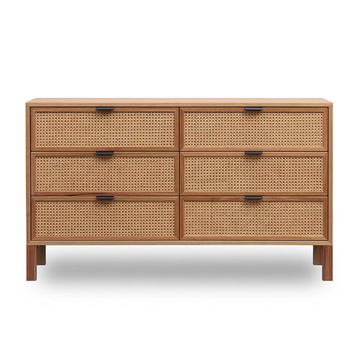 Junta Messmate Timber & Rattan 6 Drawer Dresser, Natural