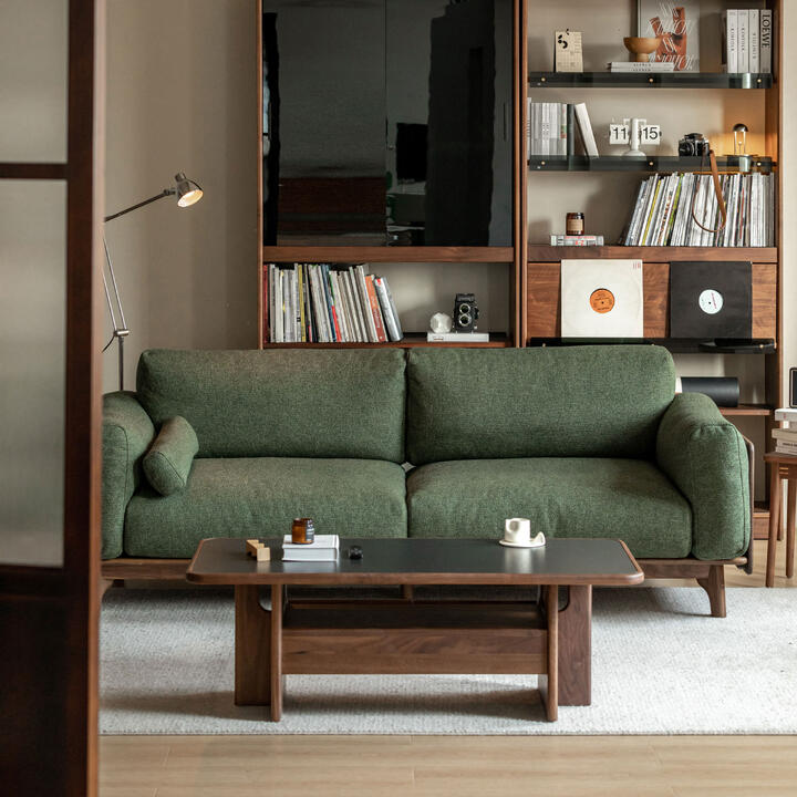Kinoya Fabric & American Walnut Timber Sofa, 3 Seater, Moss Green