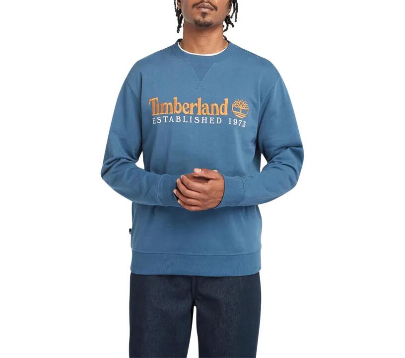 This men’s sweatshirt pays homage to 1973, the year Timberland introduced our iconic waterproof boot. It proudly displays our Timberland Tree logo front and center and is made with 80% organically grown cotton that was farmed using methods that avoid the use of most synthetic fertilizers and pesticides.