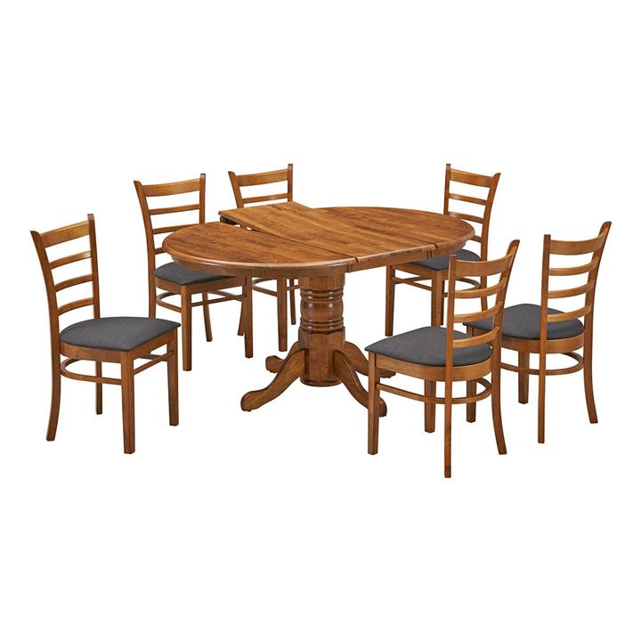 Narellan 7 Piece Rubberwood Extensible Round Pedestal Dining Table Set, 105-150cm