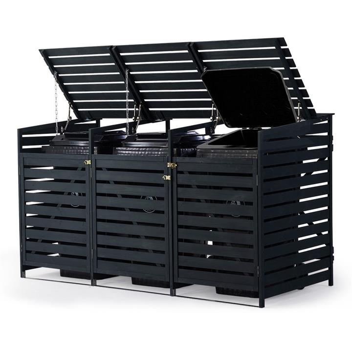 PLANTCRAFT Triple Wood Wheelie Bins Storage Shed, 3 Door Garbage Rubbish Bin Enclosure