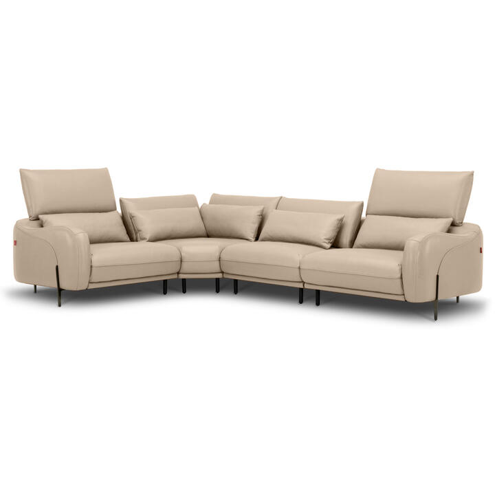Quista Leather Modular Corner Sofa, 5 Seater, Vintage Cream