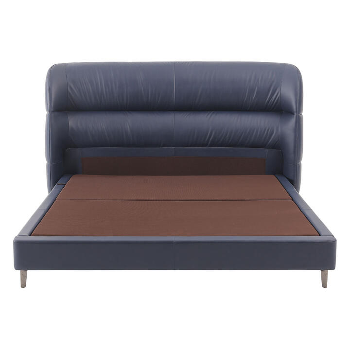 Sephira Top Grain Leather Platform Wing Bed, King, Royal Blue