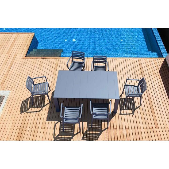 Siesta Vegas 7 Piece Commercial Grade Outdoor Extendable Dining Table Set, 180-220cm, with Artemis Armchair, Anthracite