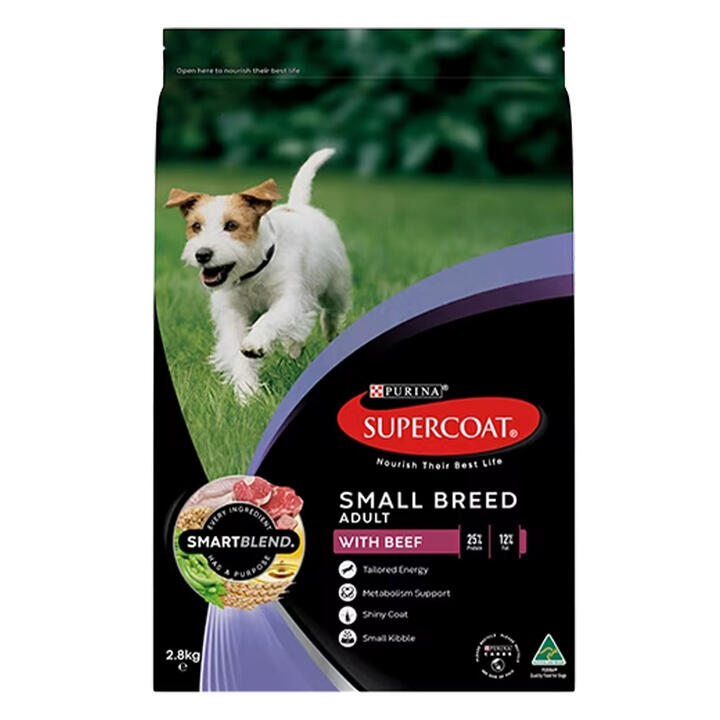 Supercoat Adult Beef is composed for small breed dogs to provide complete and balanced nutrition while maintaining the health of adult dogs. Shop online at Low prices from VetSupply.