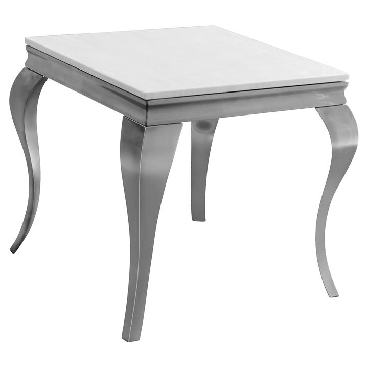 Tresor Faux Marble Top Stainless Steel Side Table, Nickel / White