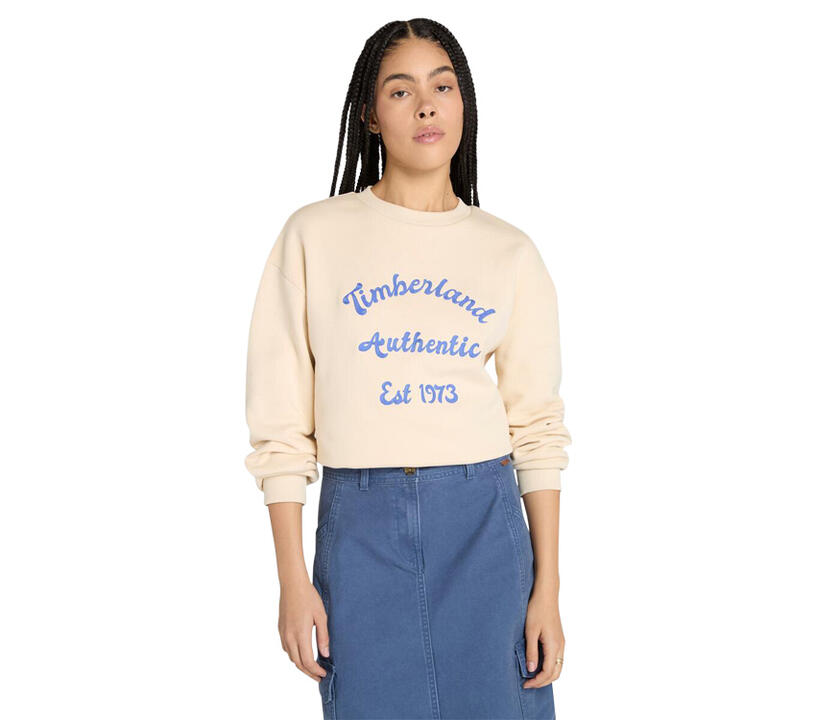 Slip into laid-back warmth with this brushed back crewneck, knit from an 80/20 cotton-poly blend for soft wear. A double-knit rib collar, ribbed hem and cuffs, and Timberland chest graphic finish the relaxed silhouette.